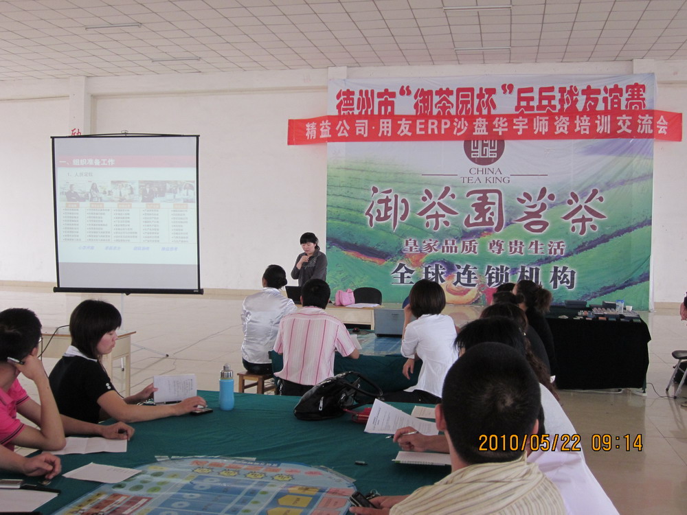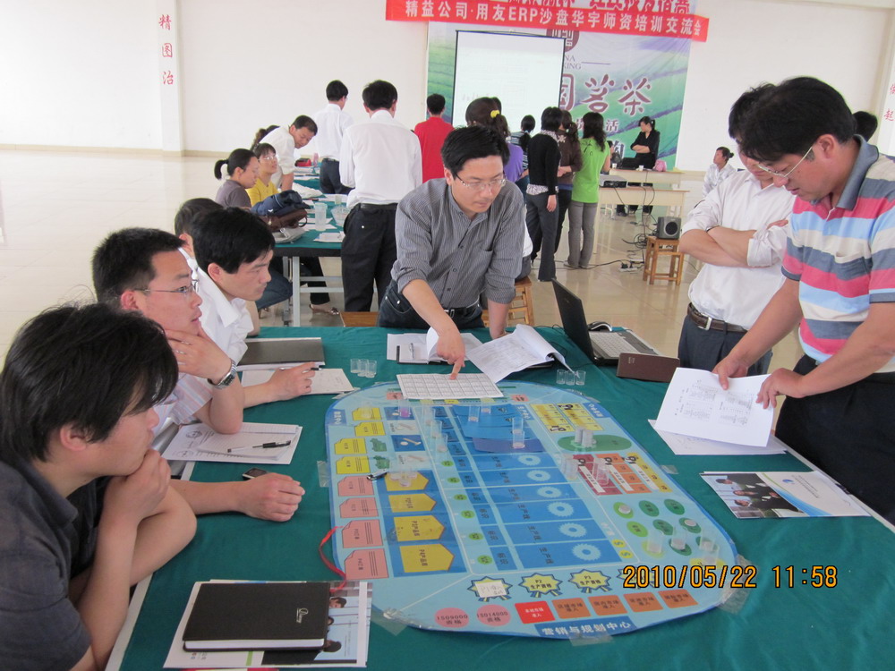 为加深教师对企业经营管理的进一步认识,经济管理系于2010年5月22日在华宇学院大学生俱乐部承办了德州精益公司用友ERP沙盘培训,新葡萄官网经济管理系主任张开涛、教学主任孔建华、我系30余名教师以及德州学院、德州职业技术学院、德州科技职业学院10多名教师代表共同参加了此次培训。该培训以物理沙盘为主,由用友ERP公司的培训人员为各位老师讲解沙盘大赛比赛规则。