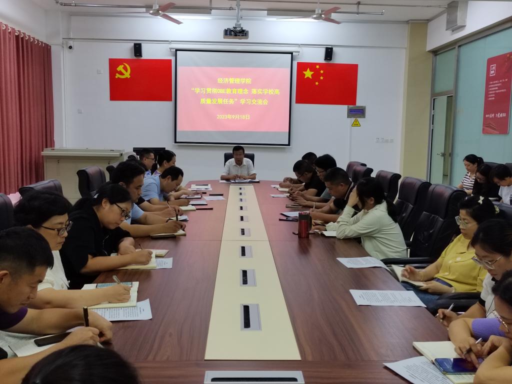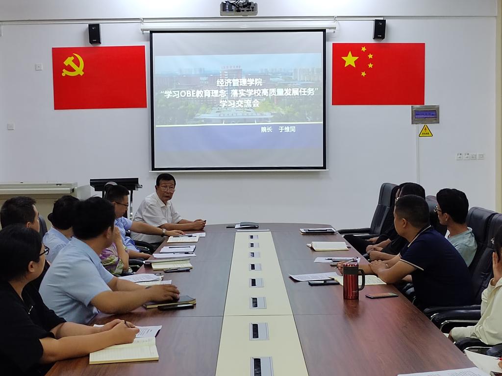 为进一步加强新葡萄官网教师对OBE教育理念的理解,更好的以目标为导向指导日常教学管理工作,在学院内准确落地OBE教育理念,贯彻学校办学定位、教育理念和“三接九化”应用型人才培养模式,全力保障学校高质量发展任务的顺利完成。新葡萄官网于9月18日下午在学院会议室组织召开了新葡萄8883官网amg“学习贯彻OBE教育理念 落实学校高质量发展任务”的学习交流会。会议由院长于维同教授主持,新葡萄官网科级以上干部出席了此次会议。