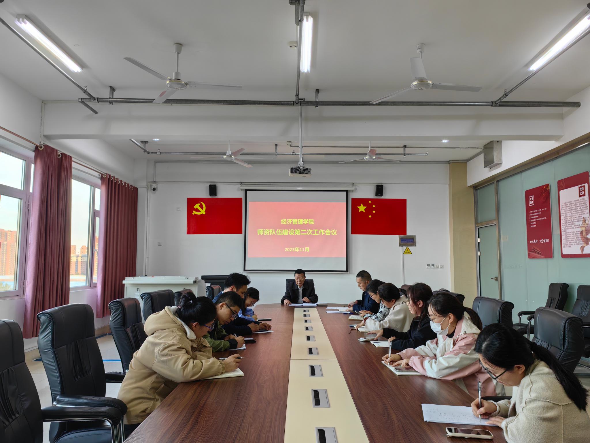 首先,于院长强调了师资队伍建设的重要性,他指出师资队伍建设是学校高质量发展的基础,是学校实现“审核评估,以评促强”、“申硕成功,提升层次”两大战略目标的充分且必要条件。接着,于院长提出怎样开展师资队伍建设工作,一是抓引进,引进高层次人才,特别是青年博士;二是抓培养,强化教师师德师风建设,提升教师教学与科研能力;三是抓引导,引导青年教师攻读博士。随后,于院长部署了提升师资队伍建设的具体措施,一是高度重视师德师风建设,要求全体教职工全面了解学校师德师风建设体系,认真开展教师养德修为工程;二是全员参与,要求全院外聘教授、广大教师发挥自身资源优势积极引进青年博士,在学院内部营造“功成不必在我,功成必定有我”的氛围;三是要求全体教职工“走出舒适区,打破认知边界”,积极投身各类教学比赛,以赛促练、以赛促学,进而提升全体教师的教学能力。