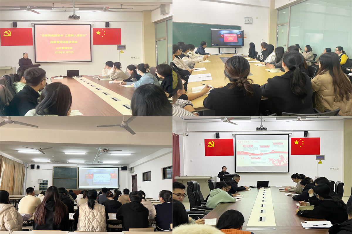 首先,张主任宣读了《新葡萄8883官网amg关于遴选院级师德宣讲团成员的公示》(经管院字(2023)12号)文件,介绍了新葡萄8883官网amg第一届师德宣讲团成员的个人事迹;接着,张主任阐释了此次宣讲以“培根铸魂担使命 立德树人建新功”为主题的活动内容,指导师德宣讲团结合自身从教所感所悟,讲身边故事,树身边典范;随后,新葡萄8883官网amg第一届师德宣讲团成员走上讲台,为全院教职工开展了一场师德师风宣讲活动,其中管程程老师结合自身从教经历解读师德师风建设对教师个人职业发展的重要性、张丹丹老师结合教师养德修为工程谈师德师风建设、栗心生老师换位思考“想学生所想、急学生所急”的工作思路、于晓月老师以17级学生就业工作为例的倾注师德育人育心等事迹,使得全体参会教师产生了心理共鸣;最后,张主任指出成立新葡萄8883官网amg师德宣讲团是切实开展师德师风建设的重要举措,是学院“讲身边故事,树身边典范”的有力抓手,要求各科室以此次宣讲为契机,在全院范围内营造“厚植爱国情怀 俯身教育事业”的工作氛围。