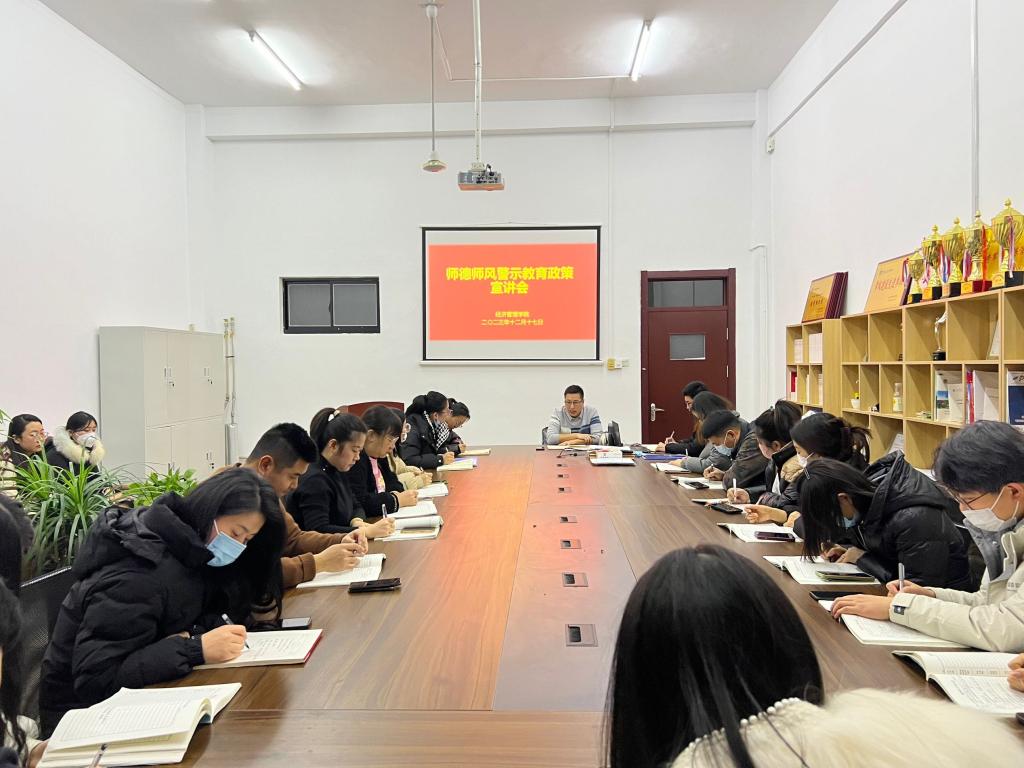 进一步规范高校教师履职履责行为,落实立德树人根本任务,弘扬新时代高校教师道德风尚,建设一支有理想信念、有道德情操、有扎实学识、有仁爱之心的高校教师队伍。2023年12月18日,新葡萄8883官网amg全体学工人员在10号楼715会议室召开了师德师风警示教育学习研讨会,会议由学院党总支书记范世伟主持。