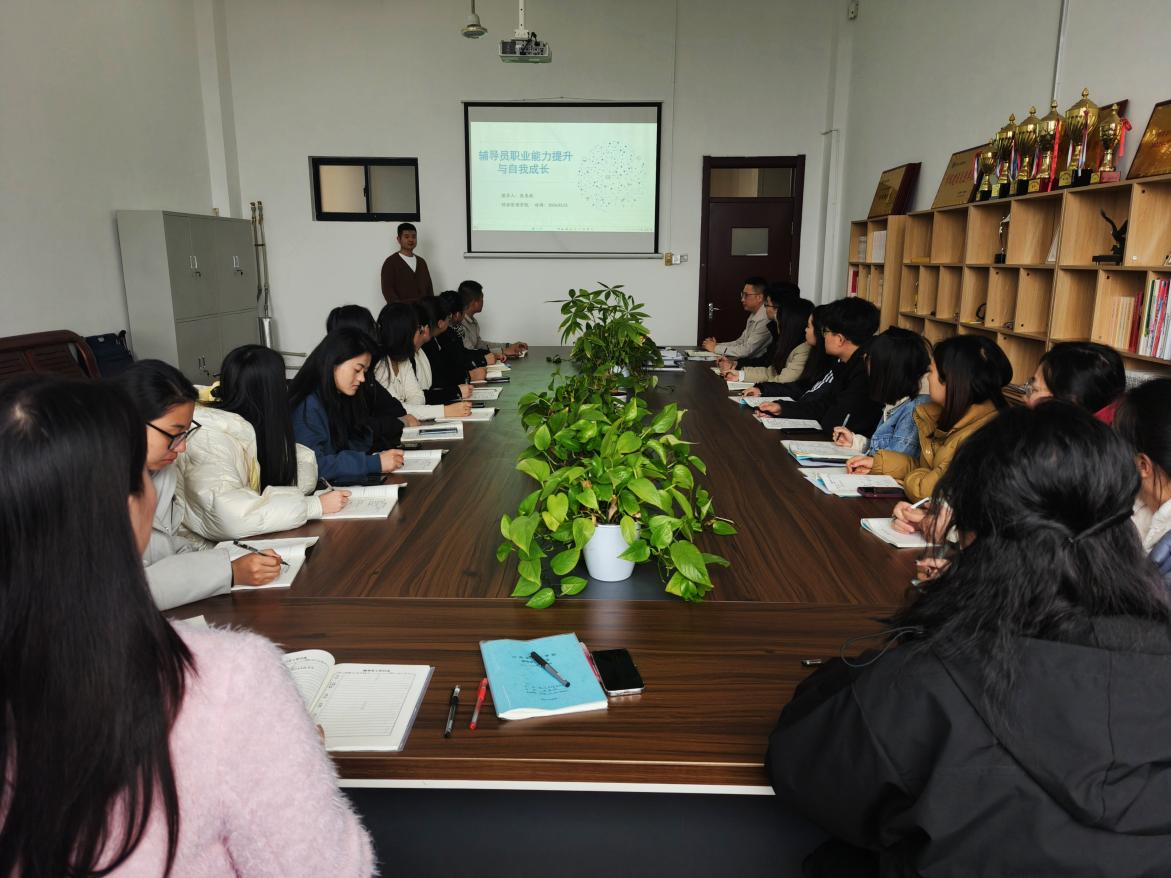 为进一步加强新葡萄官网辅导员队伍专业化、职业化建设,增强辅导员向心力、凝聚力、创新力,切实提高学生工作管理水平,创新工作方法,掌握工作技巧,助力学生教育管理工作高质量发展。新葡萄官网于3月25日上午在10号楼715会议室开展了主题为“辅导员职业能力提升与自我成长”的沙龙活动。新葡萄官网党总支书记、副院长范世伟,学院管理科科长王俊彬以及全体辅导员参加了此次沙龙活动。