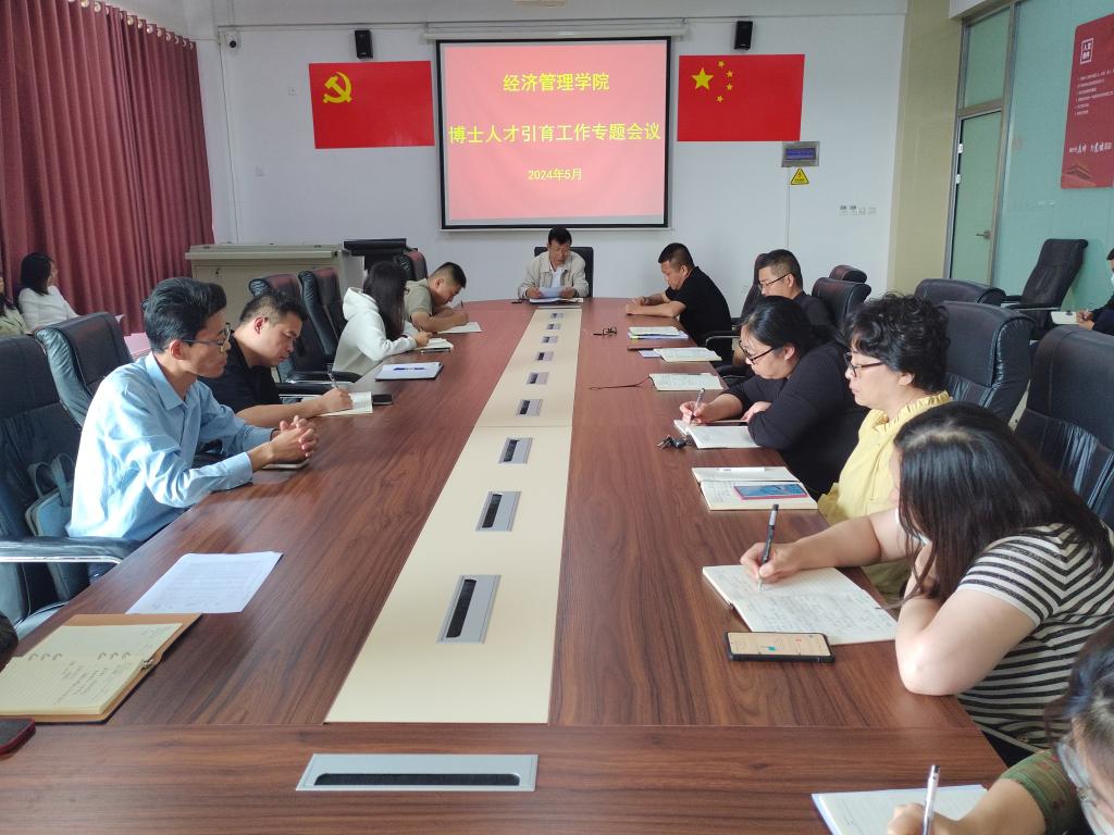 为深入开展学院师资队伍建设,优化学院师资队伍结构,全面服务学校两大战略目标和战略工程,新葡萄官网于5月6日在学院会议室召开新葡萄8883官网amg博士人才引育工作专题会议,会议由学院院长于维同教授主持,学院全体科级及以上干部出席了此次会议。