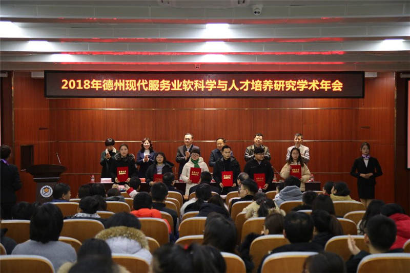 年会上,德州市现代服务业软科学研究基地和德州市现代服务业互联网+创新型人才培养研究基地主任于维同教授做了2018年基地工作报告,于教授全面总结了基地2018年所做的工作,客观地描述了所取得成绩,深入地分析了存在的问题,并且科学地规划了基地2019年的工作思路。年会秘书长张文法就本届年会会议论文征集和评审工作做了汇报,据悉年会组委会共收到社会各界投稿108篇,其中82篇收录于学术年会论文集,并评选出34篇优秀论文,分别授予一二三等奖,与会领导为本届年会获得优秀论文奖的作者颁发了证书。