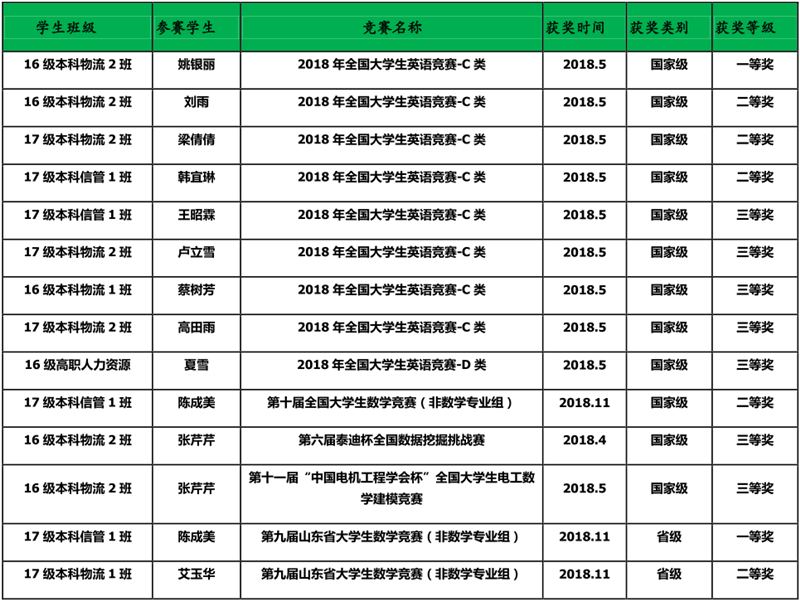 新葡萄8883官网amg2018年教师指导学生参加各级各类竞赛获奖