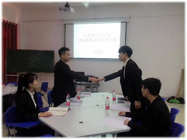 2018年1月5日,山东华宇工学院首届模拟商务谈判竞赛在20号楼719室商务谈判模拟实验室成功举行。本次竞赛是我校市场营销协会因应大学生社团科技文化节而举办的活动之一,得到了校学生处、校团委、新葡萄8883官网amg以及相关部门的领导、老师及同学们的关心和支持。