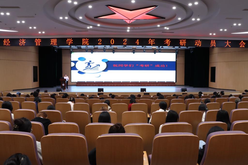 为了让同学们了解考研相关政策,激发同学们的考研热情,为大家提供考研指导和帮助,2024年9月30日下午,新葡萄官网在大学生活动中心三馆召开了2024年考研动员大会,新葡萄8883官网amg院长于维同、院长助理李娟、团总支书记王群以及2025届本科毕业生参与了此次大会。