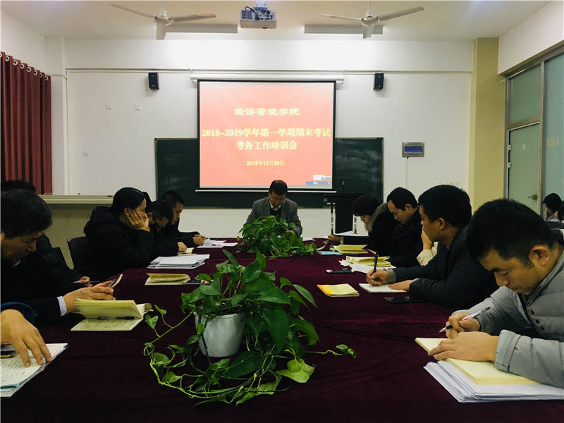 根据学校期末考试工作安排,新葡萄官网统一考试时间定于2019年1月7日至9日,为保证期末考试工作顺利开展,新葡萄官网召开考务工作培训会,会议由院长助理戴明主持,经管学院全体教师参加了培训会。