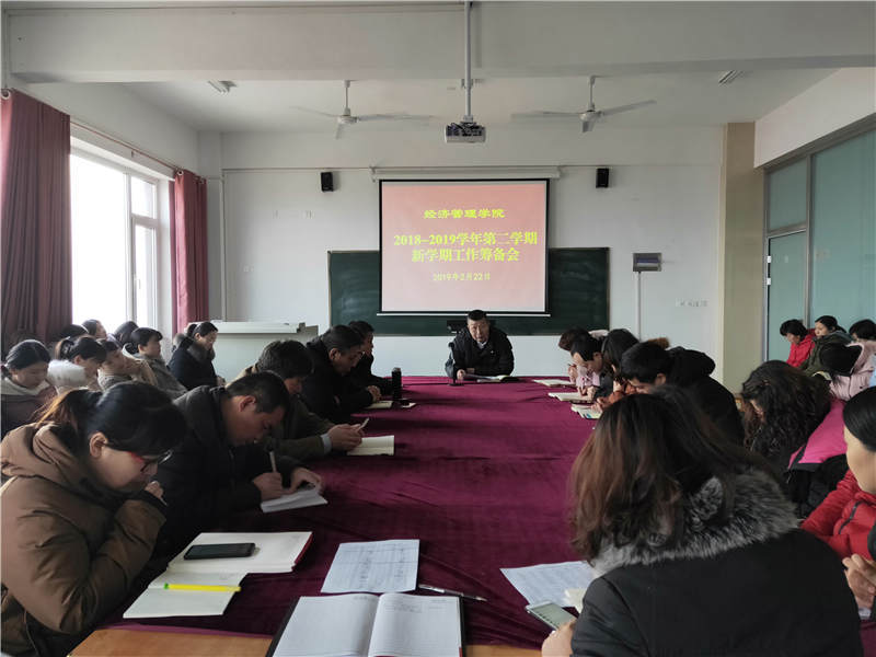 会议开始,院长于维同首先总结了2018-2019学年第一学期工作情况,肯定了新葡萄官网取得成绩的同时,也明确了存在的不足。在此基础上,对2018-2019学年第二学期新学期工作从以下四个方面进行了部署。第一,教学工作,要求全体教师要做好课前准备,上好第一堂课,积极做好期初教学检查工作;第二,请假流程,会议向全体教师明确了请假制度,要求教师要严格按照流程执行;第三,2019年学院初步工作重点。会议指出,教学上全面提升人才培养能力,着力课程建设;科研上积极申报国家、省部级项目,发表高质量论文,提升社会影响;学生工作上,要让学生明确“为谁学、学什么、怎么学”,树立学生正确的价值观和学习观。任课教师应该积极带领学生参加各种科级竞赛,培养学生的各种能力,使新葡萄官网各项工作更上一层楼。