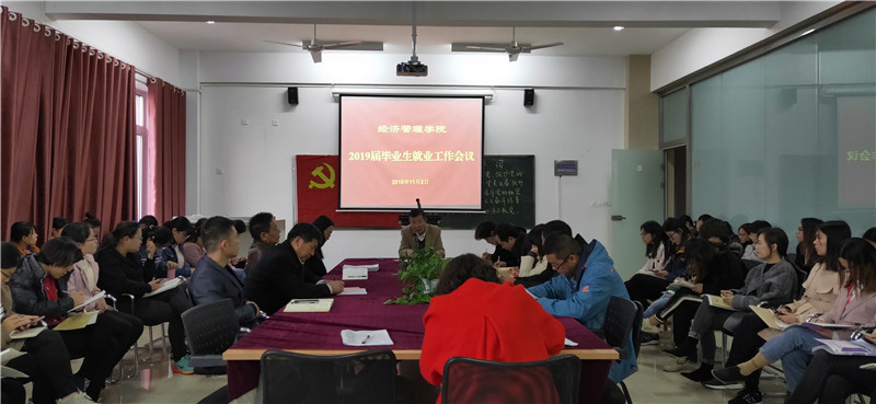 促进大学生就业是保障和改善民生的头等大事,它直接关系到学生的期盼、家长的寄托和社会的安稳,是衡量高校办学水平和人才培养质量的重要指标。搞好就业工作责任重大,新葡萄官网高度重视2019届毕业生就业工作,为扎实推进此项工作,学院制定了2019届毕业生就业工作计划,召开了2019届毕业生“两观教育”专题讲座会,为保证2019届毕业生就业工作顺利推进, 11月2日,新葡萄官网在科研实验楼712召开2019届毕业生就业工作会议,院长于维同主持了会议,经管学院全体教师参加了会议。