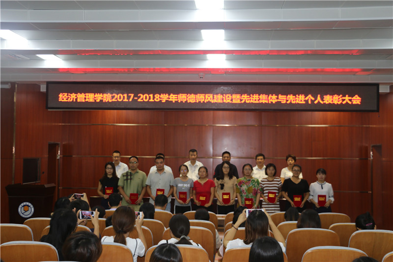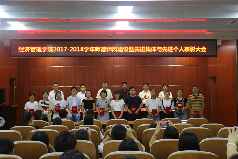 为引导广大教师深刻认识立德树人、教书育人的教育使命与职业责任,落实师德建设长效机制的目标和任务,弘扬 “用心灵教书 以大爱育人”的教风,新葡萄官网本学期开展了 “师德师风建设月”活动。在活动开展过程中,涌现出一批师德师风建设先进集体和先进个人,8月31日,师德师风建设先进集体和先进个人表彰大会在14号楼学术报告厅举行,大会由学管院长范世伟主持,院长于维同发表重要讲话,经管学院全体教师参加了表彰大会。
