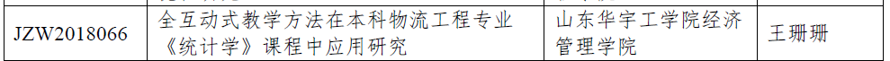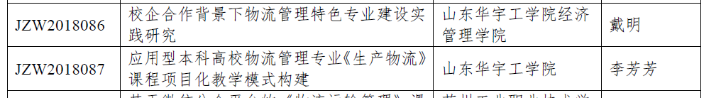 日前,由教育部高等学校物流管理与工程类专业教学指导委员会、全国物流职业教育教学指导委员会和中国物流学会组织开展的“2018年全国高校物流教改教研课题”立项工作结束,新葡萄官网教师戴明主持的“校企合作背景下物流管理特色专业建设实践研究”(JZW2018086)、李芳芳主持的“应用型本科高校物流管理专业《生产物流》课程项目化教学模式构建”(JZW2018087)、王珊珊主持的“全互动式教学方法在本科物流工程专业《统计学》课程中应用研究”(JZW2018066)3项课题获准立项。