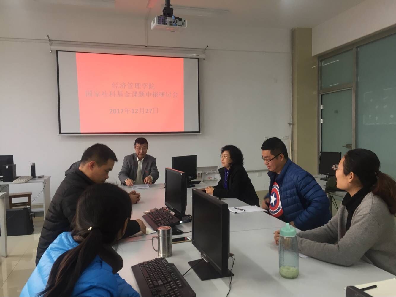 为做好2017年度国家社科基金课题的申报工作,切实提高申报质量,新葡萄官网于12月27日在实验科研楼召开了国家社科基金课题申报研讨会,会议由院长于维同主持,杨万春教授、纪素芝教授、王钢主任以及纪素芝科研团队全体成员参加了会议。
