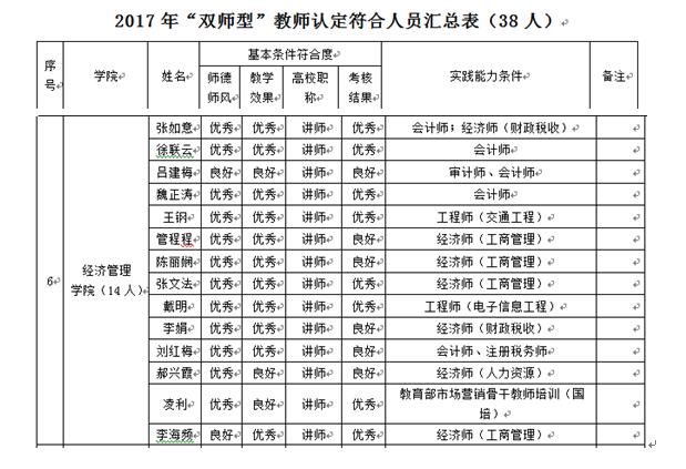 近日,人事处公布了2017年度“双师型”教师认定结果,全校38名教师通过“双师型”认定,其中,新葡萄官网有14名教师成功被认定为 “双师型”教师,占全校“双师型”教师总量的三分之一以上。本次“双师型”教师的认定,新葡萄官网涉及7个专业的26名教师积极参加了申报。经过学院评审,人事处审核批准,共有14名通过认定,占专业教师总数的25%,距离教育部要求的“双师”型教师要达到30%的要求相差5个百分点。