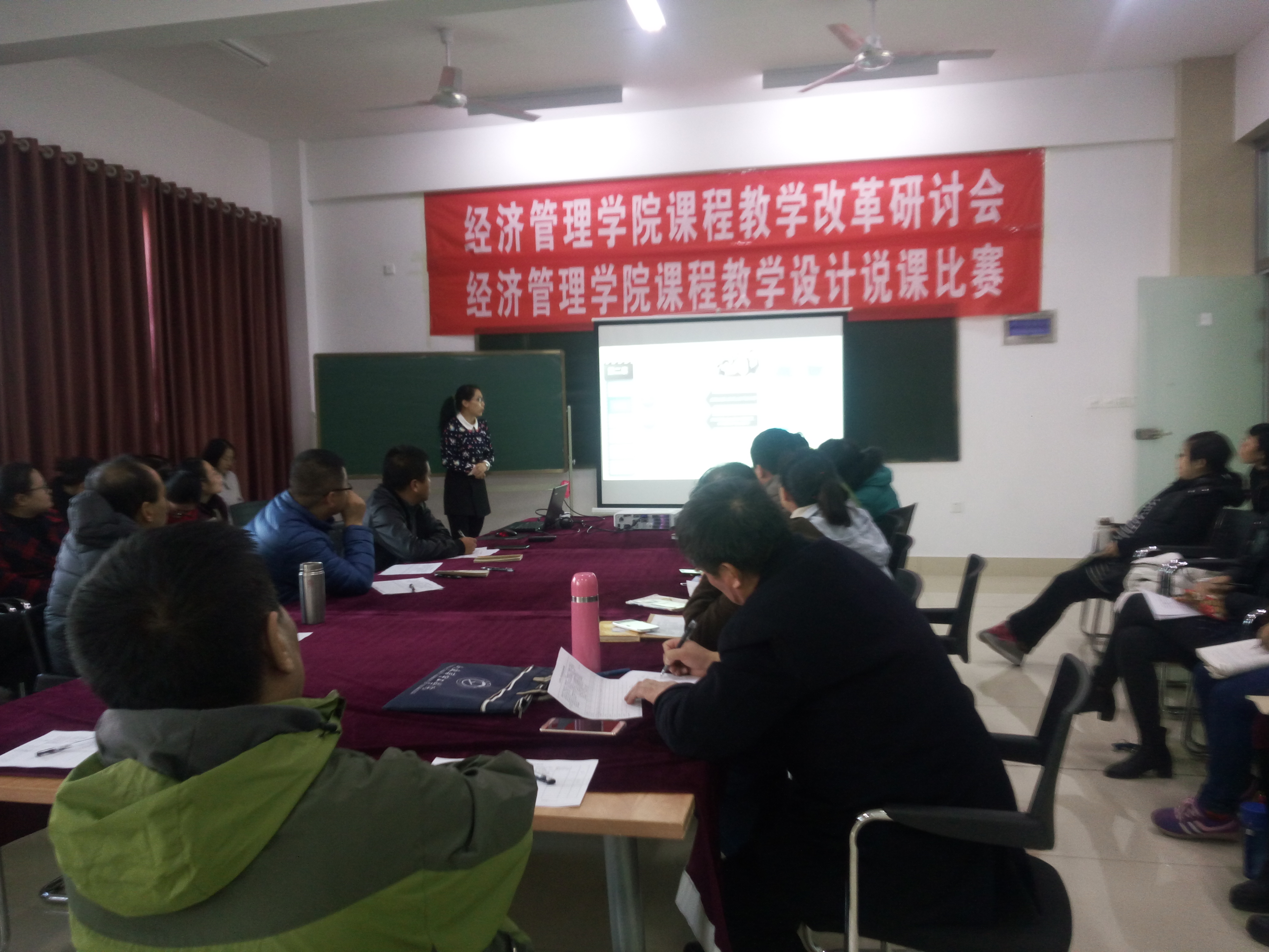 本次比赛由于维同、杨万春、杨军、戴明、刘红梅、白林、魏正涛、王钢、张文法、李海频、凌利、黄荣亮等十二位教师担任评委,采取去掉一个最高分一个最低分的评分形式,选出代表本院参加校级比赛的老师。比赛过程中,各位老师准备充分,内容充实、结构合理,从说课程、说教法、说学法、说教学程序及教学反思等方面将自己的教学经验与大家进行了交流。比赛最后,各位评委向全体教师提出了宝贵的意见和建议。经过激烈的角逐,会计教研室的姜云老师得到了全体评委的一致认可,将代表学院参加校级说课比赛。