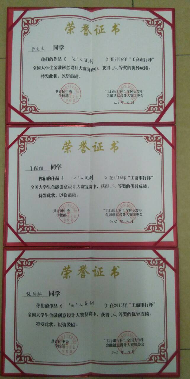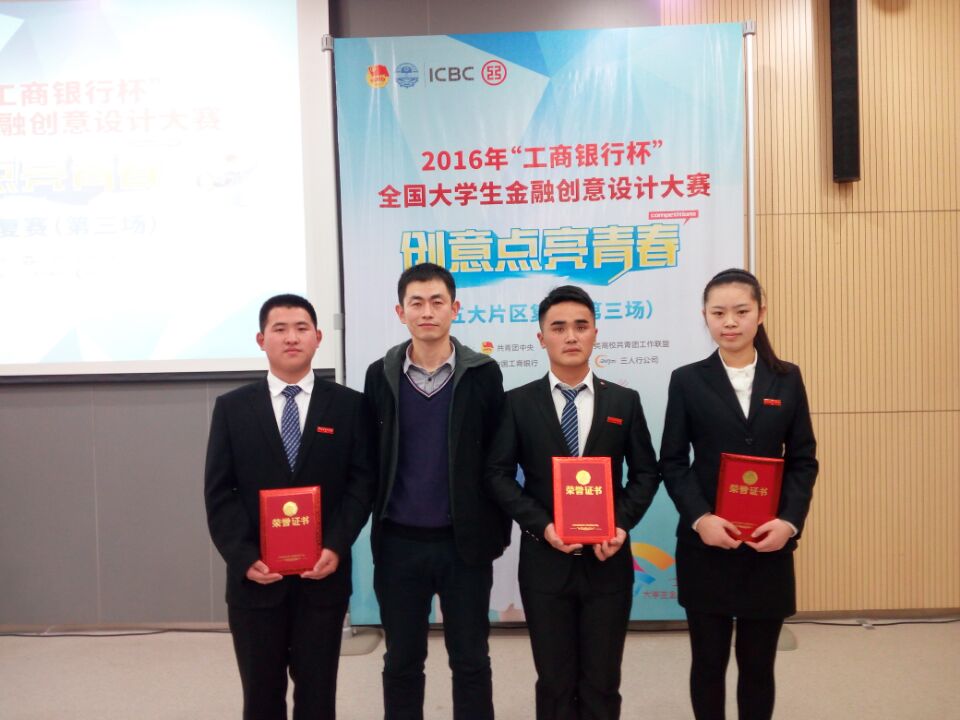 12月6日,由共青团中央指导、中国工商银行主办的2016年“工商银行杯”全国大学生金融创意设计大赛五大片区复赛在南京大学举行。由新葡萄8883官网amg学生丁阳阳、饶纬科、郭文文创作的“e人定制”获全国三等奖。