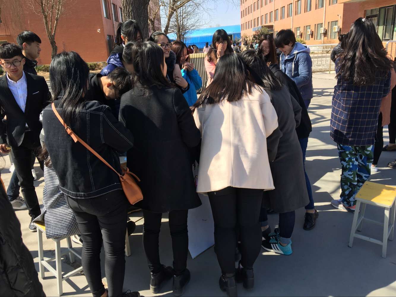 “请送我个大抱枕”、“我想要一套四大名著”、“我想有一个帅哥陪我聊天给我唱歌”、“位导员给我们唱支歌”……女生们的心愿自然少了男同学围观,好多男同学或直接撕下卡片或拿出手机拍下了卡片上的联系方式准备帮女生们实现愿望。
