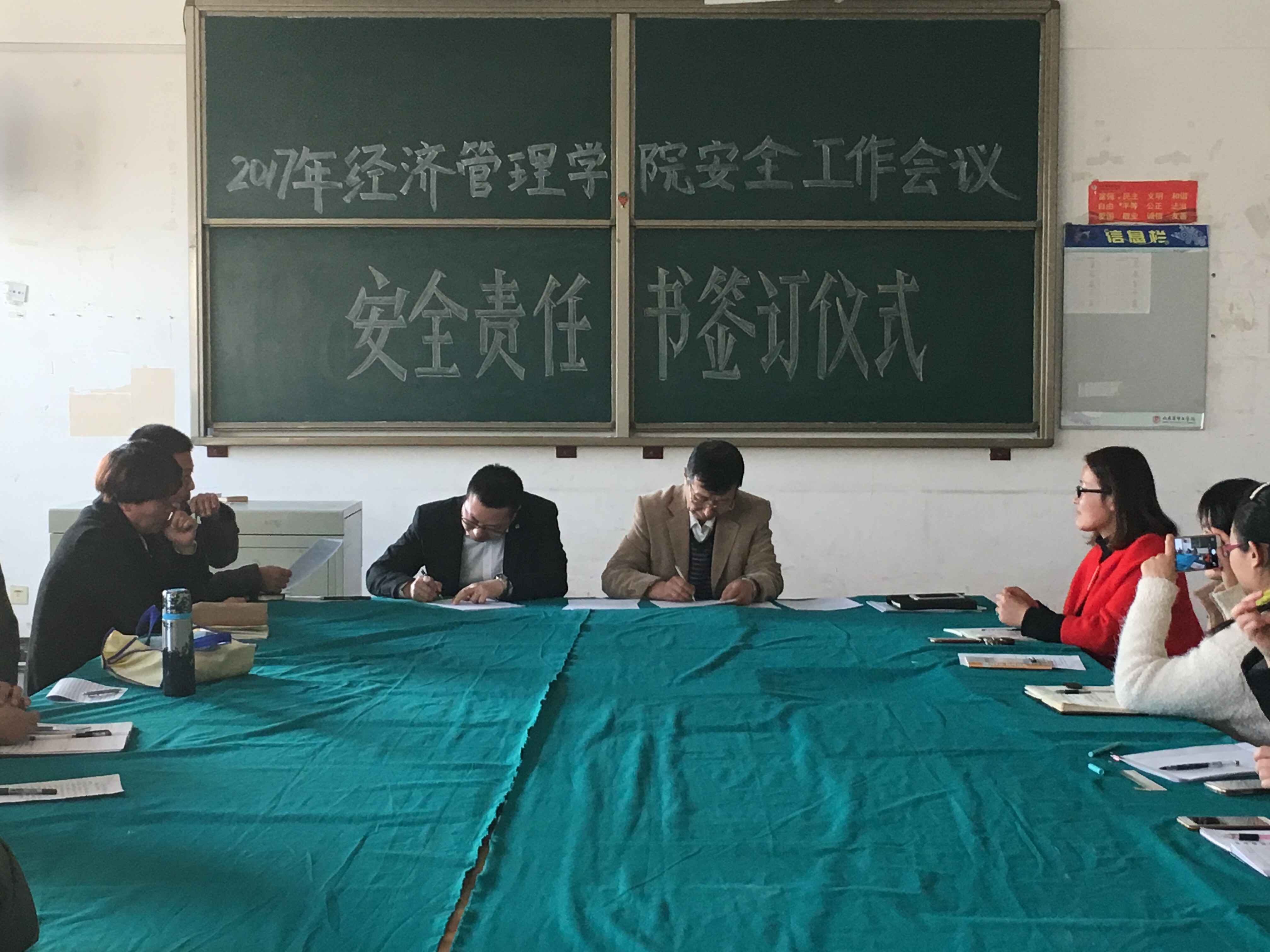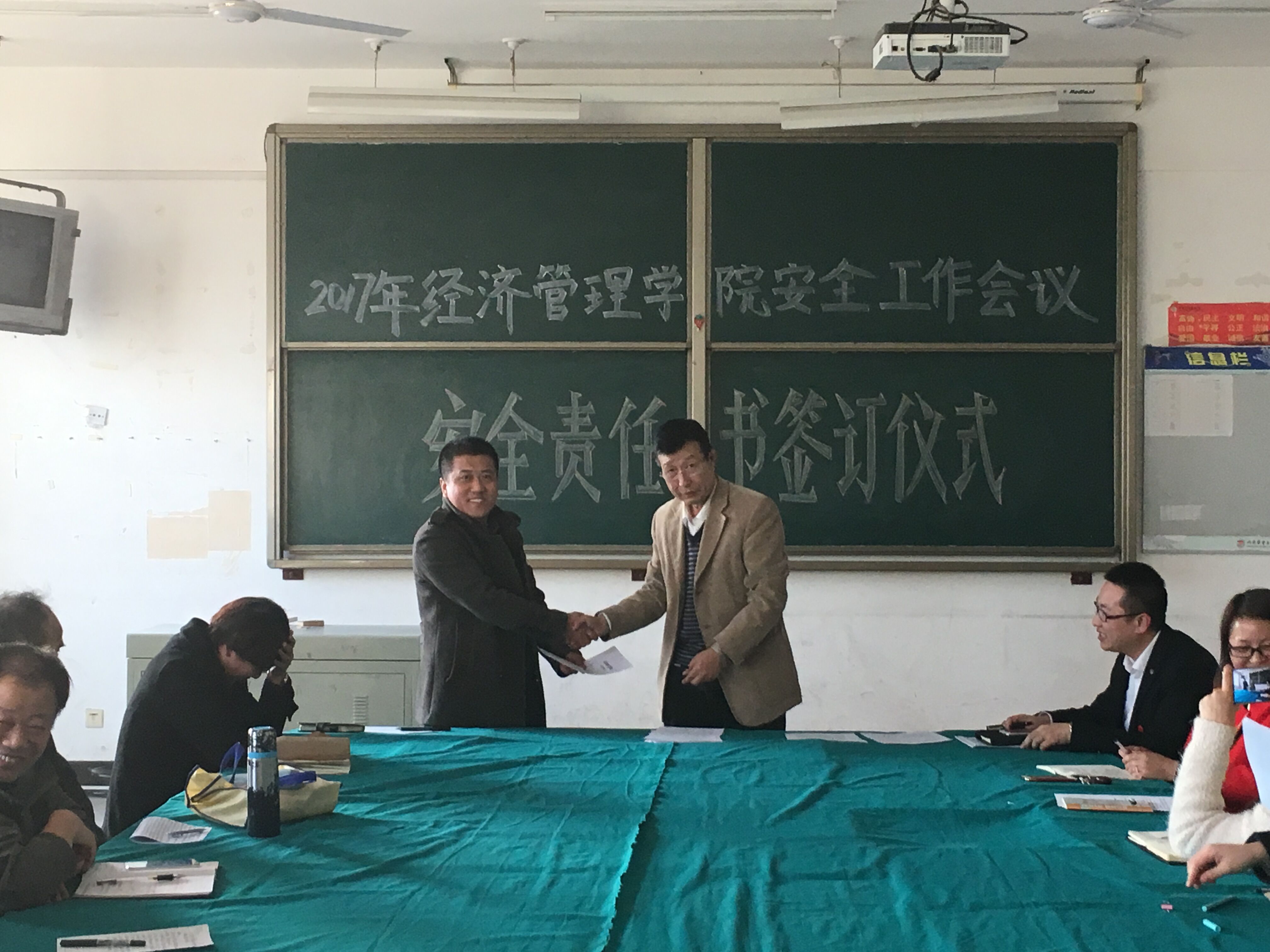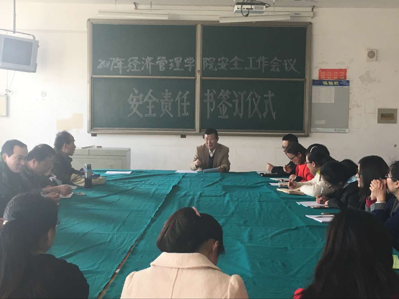 经管院长于维同教授向全院教职工介绍了《2017年新葡萄8883官网amg安全目标责任书》主要内容,他指出,2016年,在学校领导的正确领导下,在全院师生的共同努力下,新葡萄官网未发生任何安全责任事故,有效维护了广大师生生命财产安全和学院的正常秩序,为学院的健康发展提供了有力保障。他要求全院教职工要认真学习贯彻习近平总书记在全国高校思想政治工作会议上提出的“要坚持不懈推进高校和谐稳定,培育理性平和的健康心态,加大人文关怀和心理疏导,把高校建设成安定团结的模范之地”的总要求,学习校领导在学校《2017年安全工作会议》上的讲话精神,进一步提高思想认识,落实工作责任,深入开展安全隐患排查整治,不断强化学社的安全教育管理,进一步完善校、院、班三级心理健康教育体系,努力营造和谐稳定的良好校园环境,为平安校园和和谐校园建设作出应有的贡献。