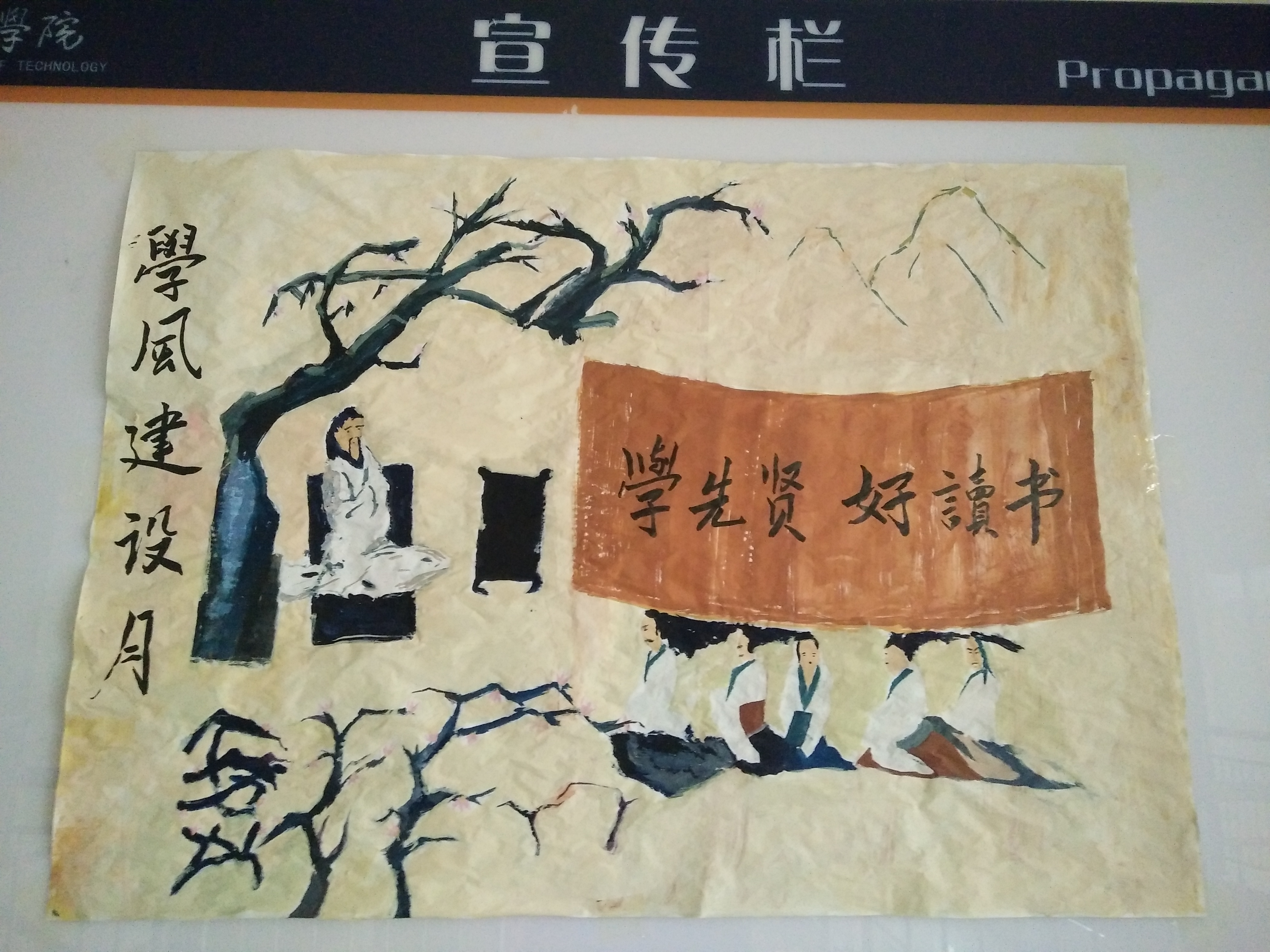 为宣传贯彻好“学先贤,好读书”活动,新葡萄官网积极发挥宣传栏及班级板报的宣传作用。通过张贴宣传海报,绘制黑板报宣传“学先贤,好读书”活动。同时,各年级辅导员先后两次召开“好读书”主题班会宣传“学先贤,好读书”活动,学院二级网站也积极宣传本次活动,对本次活动进行全方位、多层次、多角度的宣传动员。