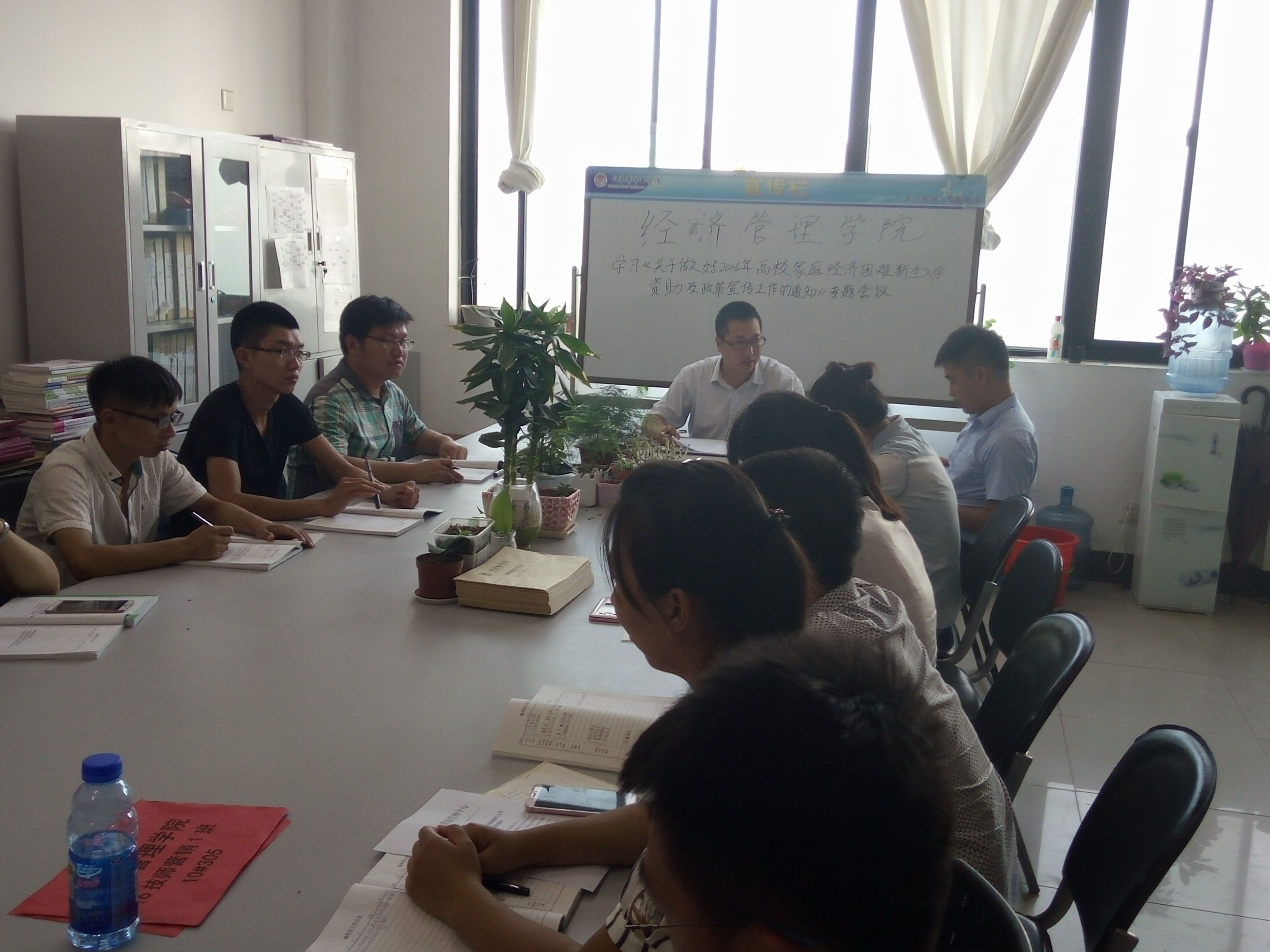 为进一步做好2016年高校家庭经济困难新生入学资助及政策宣传工作,确保家庭经济困难学生顺利入学。8月30日下午,新葡萄8883官网amg在10号楼419召开认真学习《关于做好2016年高校家庭经济困难新生入学资助及政策宣传工作的通知》(鲁学助(2016)34号)文件专题会。新葡萄8883官网amg全体学管人员参加了会议,学管院长助理范世伟主持会议。