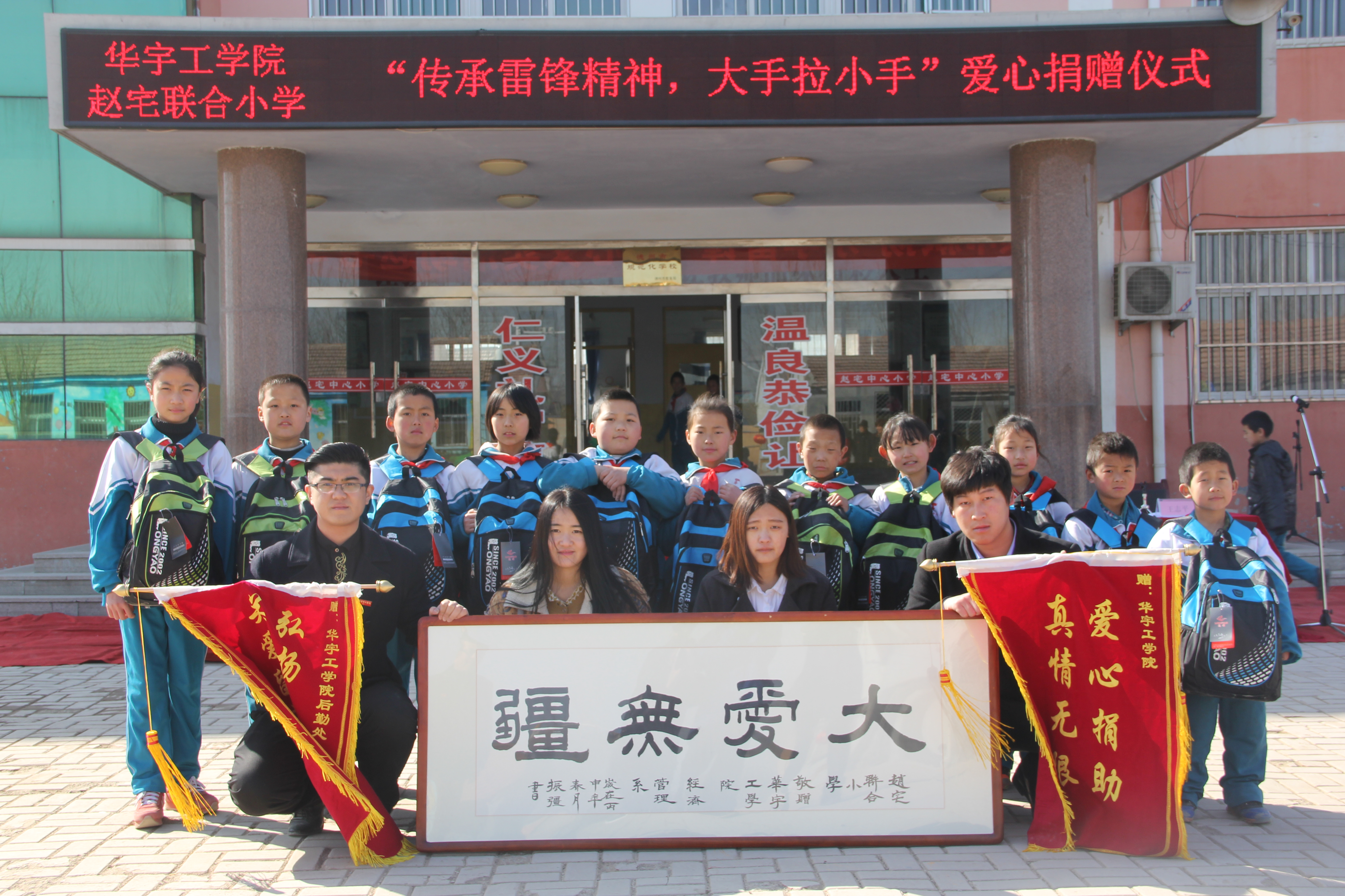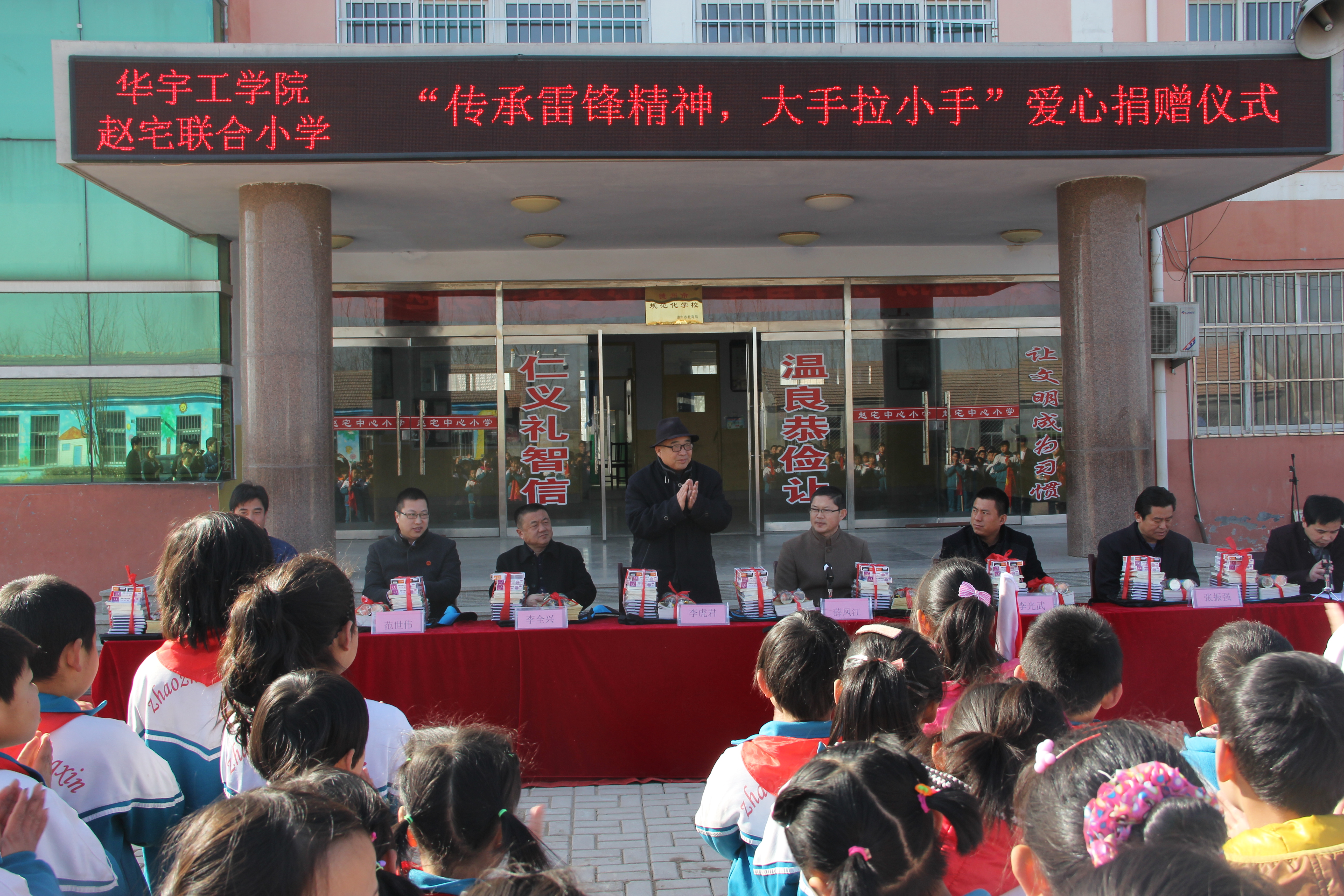 3月10日上午,山东华宇工学院后勤处与经济管理系党支部、工会举行“传承雷锋精神、大手拉小手”的爱心捐赠活动。经济管理系主任李虎君、学院后勤处副处长李光武、经济管理系党支部书记、主任助理范世伟及学院师生代表参加了活动。德州市经济技术开发区教育局副局长薛凤江、赵虎镇镇长助理李全兴也出席了此次捐赠活动。