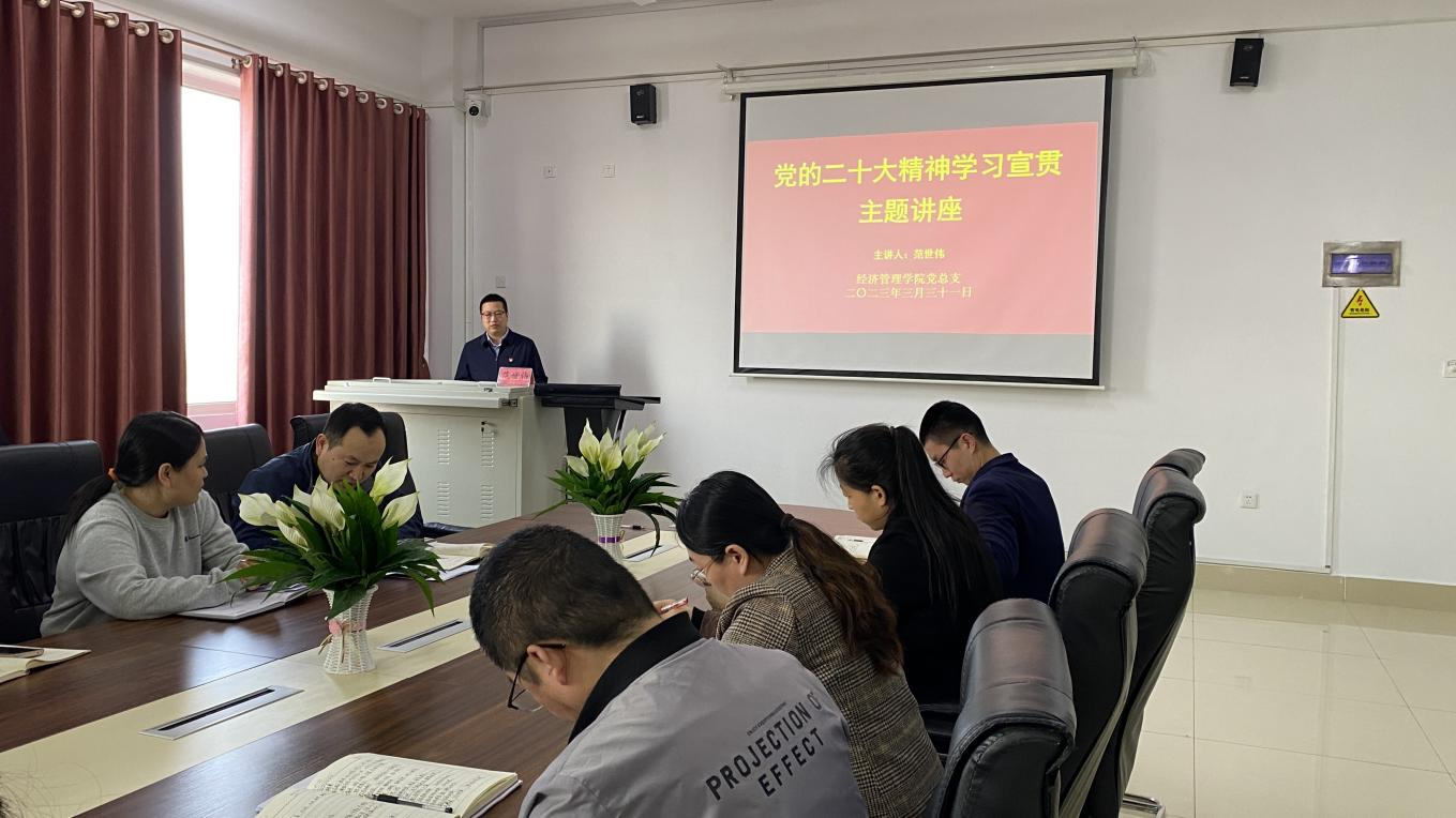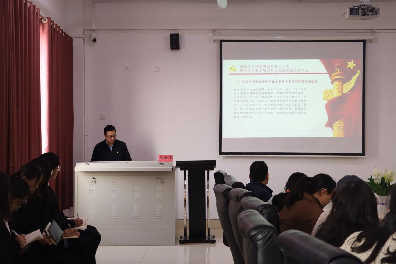 为促进党员师生认真学习领会二十大报告精神,掌握核心要义,理解精神实质,推动学习宣传贯彻党的二十大精神走深走实,3月31日,在20号楼712会议室,新葡萄8883官网amg党总支开展了党的二十大精神学习宣贯主题讲座,邀请了党总支书记范世伟带领大家共同学习,各党支部书记、委员、党员代表、预备党员代表、入党积极分子代表参加了此次讲座。
